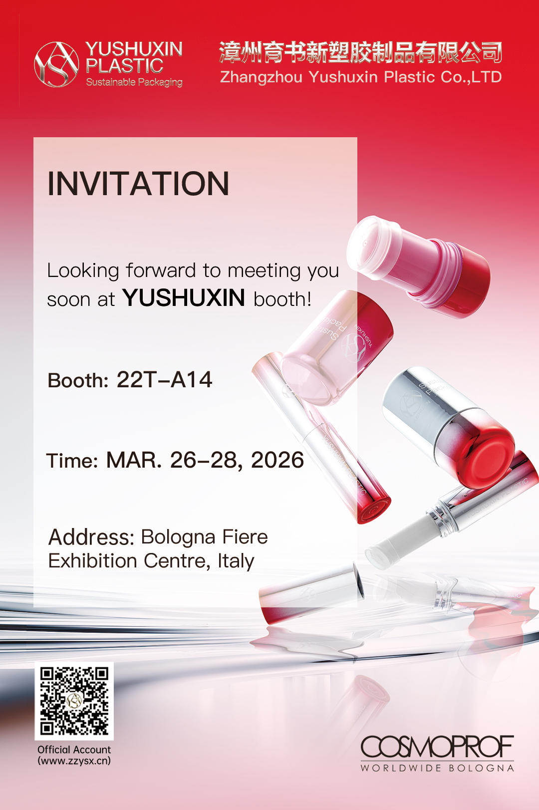 Zhangzhou Yushuxin Plastic Co., Ltd. will soon debut at Cosmoprof Worldwide Bologna in Italy, joining partners from the global beauty industry for this annual event.
